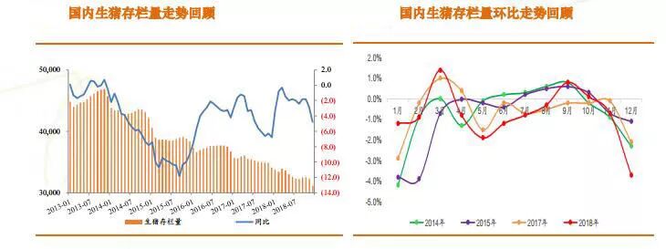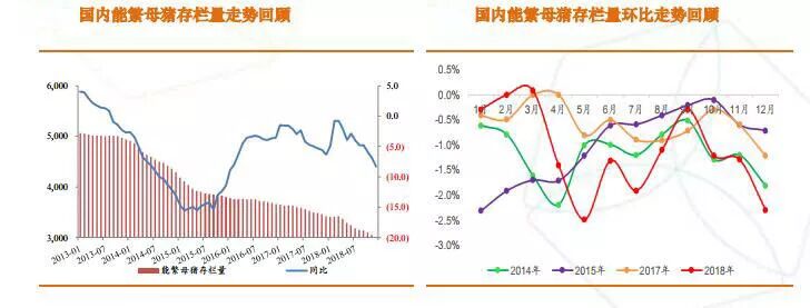 而近来由于食品安全,非洲猪瘟疫情影响生猪调运,环保要求严格,饲料价格提升等多方面影响,养猪小户、散户集中出栏,对于补栏呈观望情绪,导致猪肉价格全面下跌。而随着散户小户的退市,今年生猪存栏量和能繁母猪存栏量也有所下降。