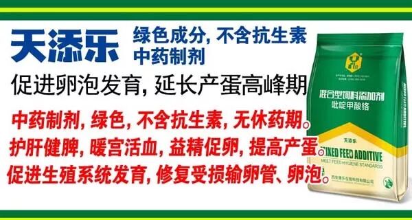 冬季疾病多发,如流感病毒和大肠杆菌都是此时的常客。通常鹅在流感或者其他病毒病过后,产蛋量会有明显的下降,此时可以使用天添乐,天添乐用于各种原因引起的蛋禽开产推迟,产蛋率上升缓慢等症,长期使用可全面延长产蛋高峰期。并能促进蛋壳腺的分泌功能,有效改良蛋壳颜色,使蛋壳变红,蛋黄颜色加深,增加蛋重、减少沙壳蛋、色斑蛋、畸形蛋、无壳蛋、软壳蛋等的比例。长期使用本品可以促进生长,有效改良蛋禽亚健康状态,具有抗应激,提高免疫力功效,并可改良种禽精子质量,提高受精率,孵化率。
